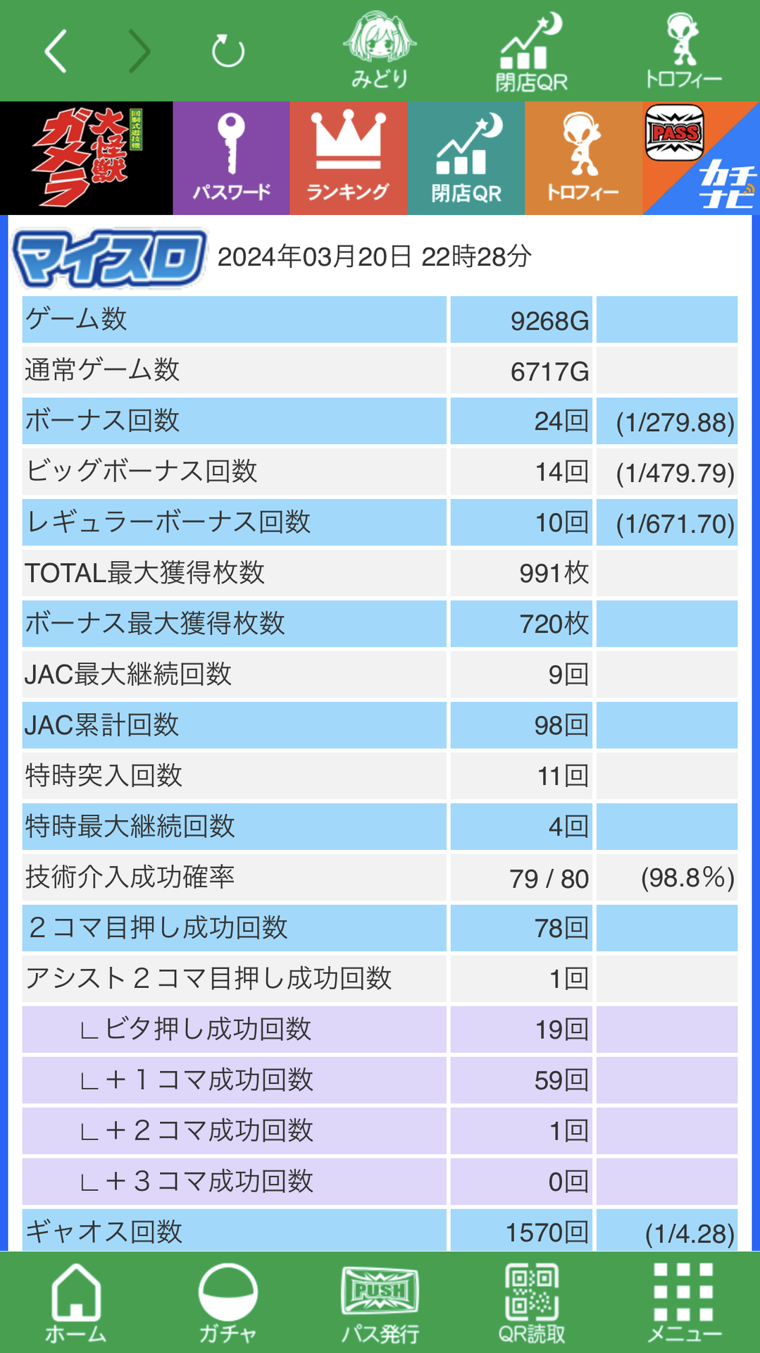 演奏ガメラ出てギャオスも悪くないからまだ打ってるけど