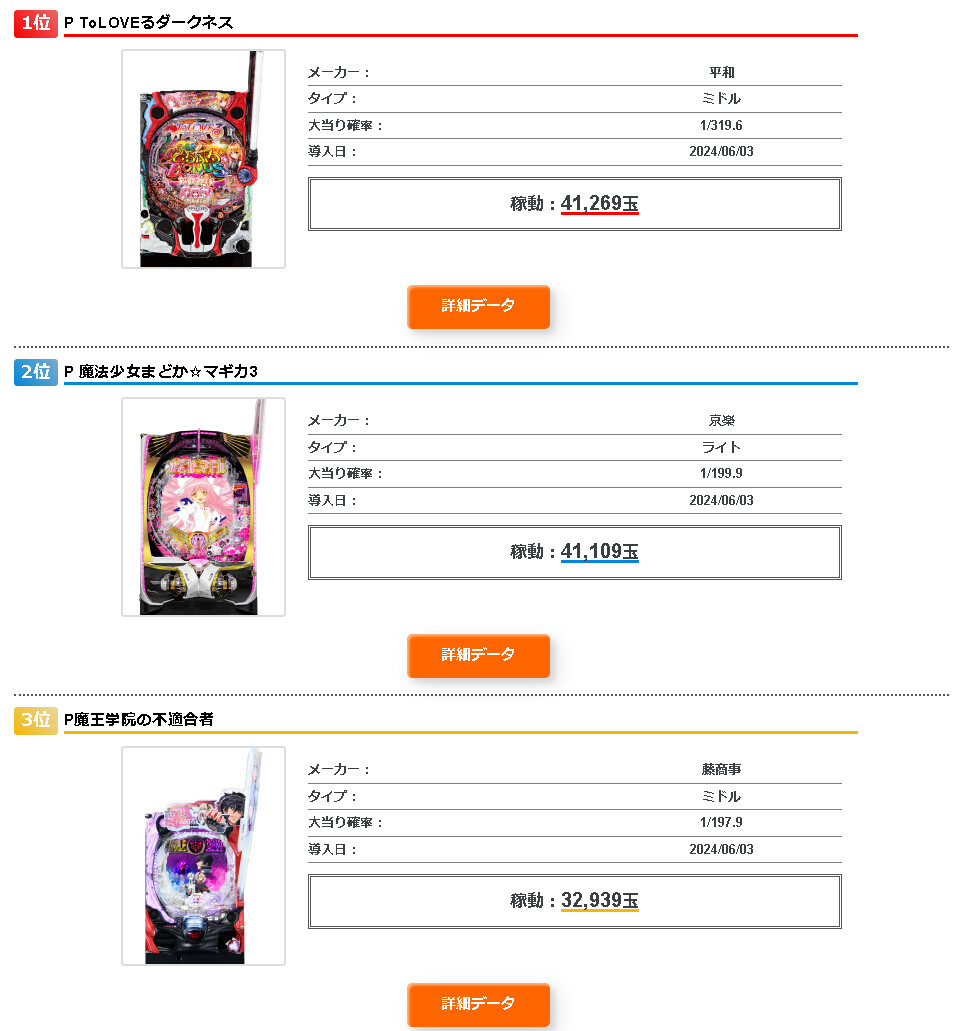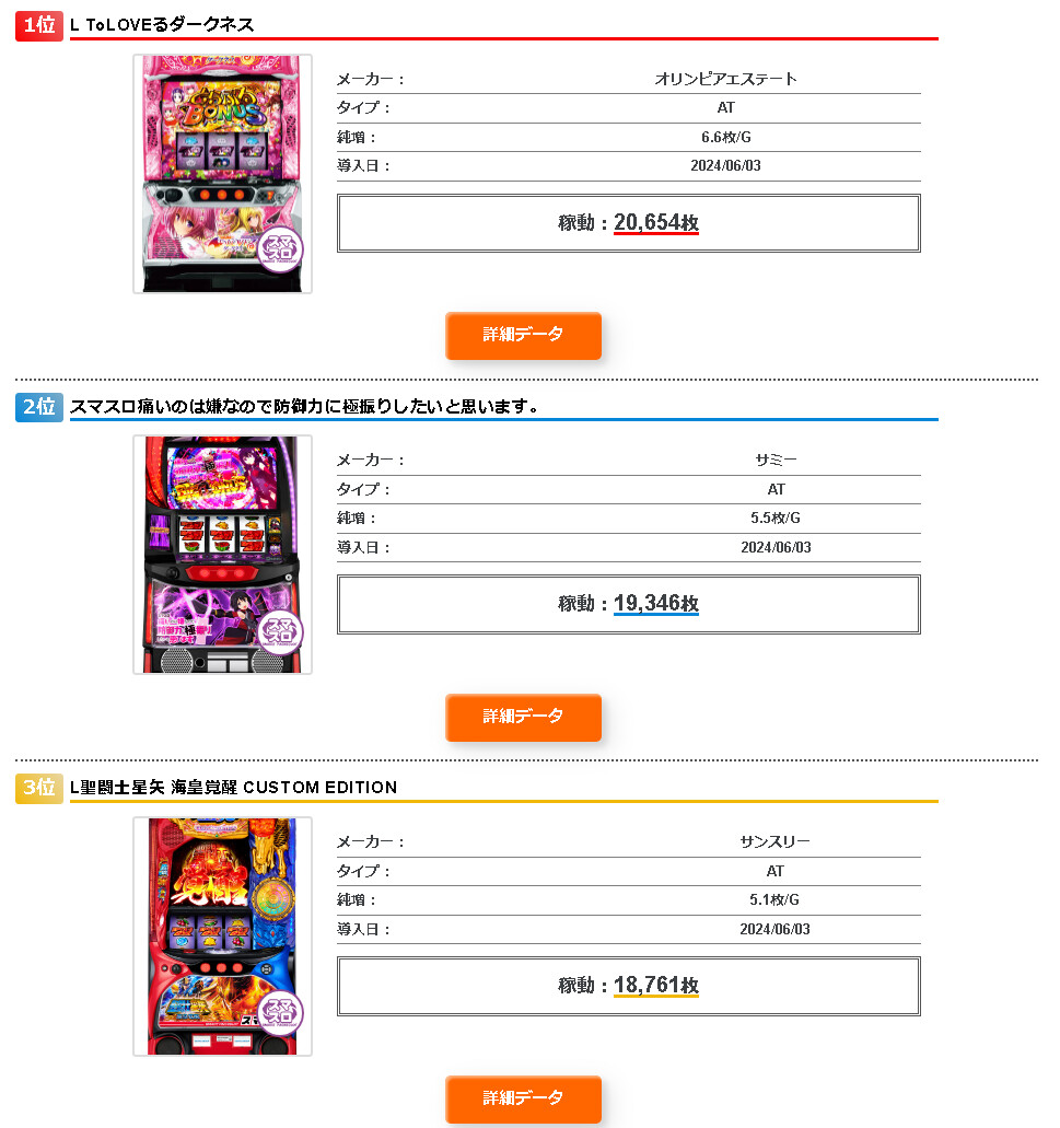 ☑P・S導入初日の稼働ランキング(6月3日)https://t.co/5z2bnzLjhI