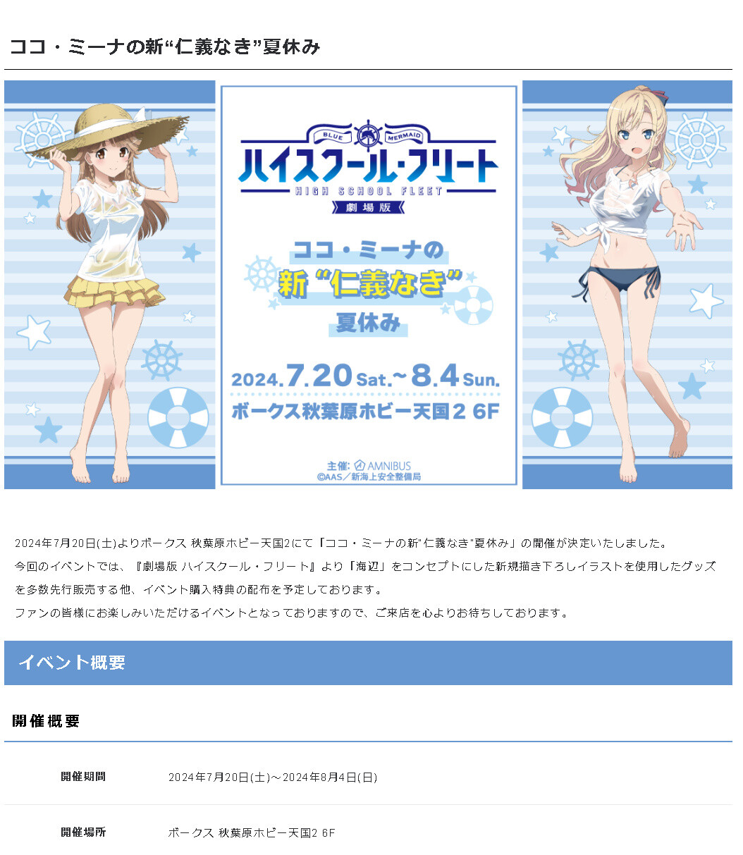 『劇場版 ハイスクール・フリート』のイベント「ココ・ミーナの新“仁義なき”夏休み」の開催が決定!