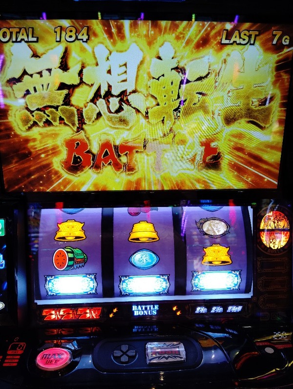 ヒットして無想転生チャンス1回転目の押し順ベルで突破して4連終了退席