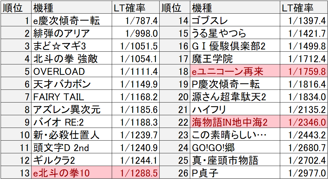 これ見るとやっぱ慶次のLTの突入しやすさはダンチだな
