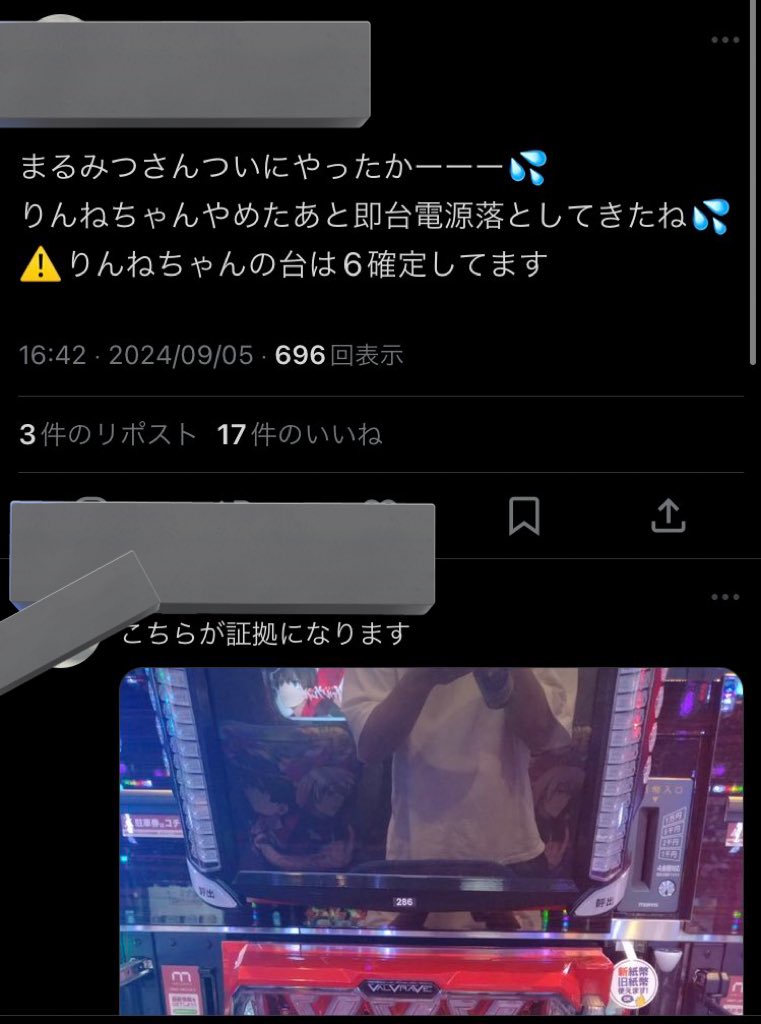 福岡のスロ専まるみつ大橋店さん、女性演者が打っていた設定6のヴヴヴを実戦終了後に電源落としてしまい炎上