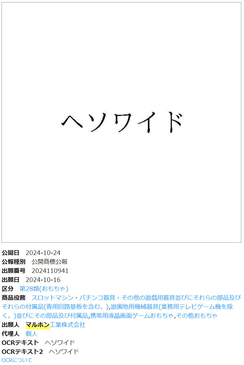 京楽が「デカヘソ」マルホンが「ヘソワイド」を商標出願 全メーカーコンプリートまでもう少しだなwww
