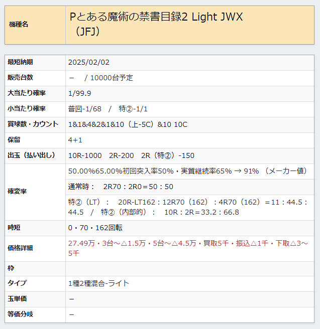 Pとある魔術の禁書目録2 甘のスペック詳細来てた