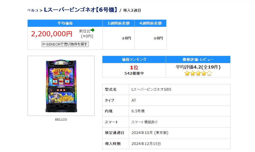 Lスーパービンゴさん、中古機平均価格220万円に到達。中古価格ランキングも1位に