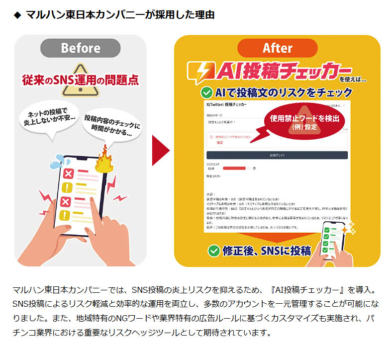 【悲報】店長のSNS投稿が炎上したマルハンさん、炎上対策で最新の「AI投稿チェッカー」を導入していた…