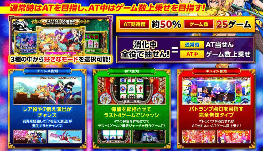 特徴は上位ATの概念を無くして有利区間切れ時に残り上乗せG数を何かに代替えしてる所にあると思う