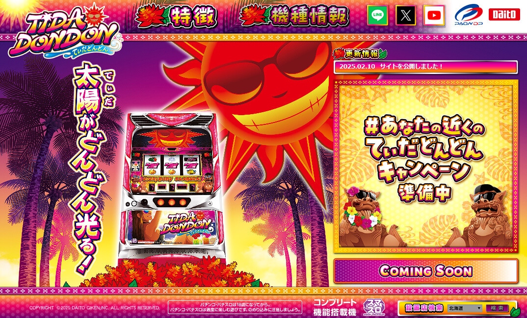 【新台】大都「Lてぃだどんどん」の公式HP公開!大都が放つ爽快沖スマスロ!BIG345枚、ボーナスループ率最大約93%