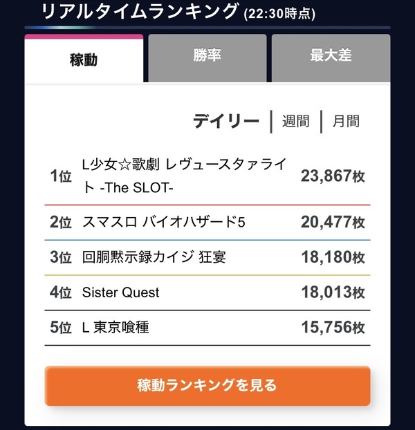同じ台数売れたシスクエは新台の稼働率最下位でございます(笑)