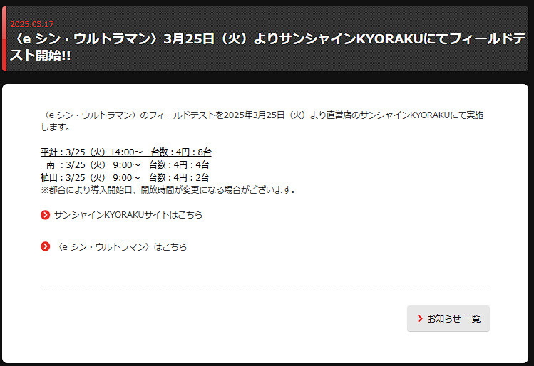 【朗報】京楽直営店にて「eシン・ウルトラマン」フィールドテスト開始決定!3月25日から本物のスキップ機能が一足先に体験できるぞ!