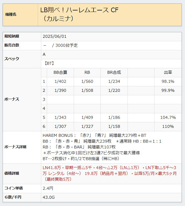 【新台】ネット「翔べ!ハーレムエース」ロングPV公開!BT500Type登場!シリーズ最多3000通り以上リーチ目!