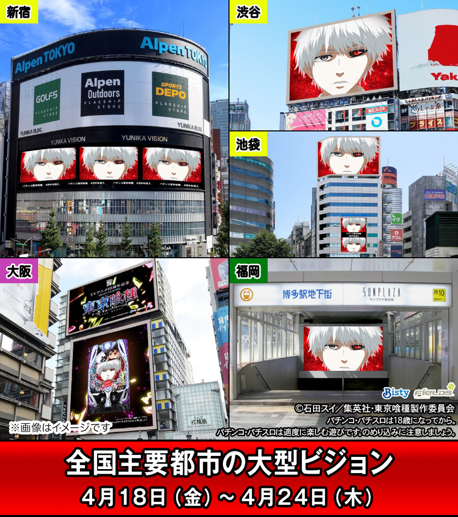 【多すぎ】e東京喰種、全国37箇所で映像広告を展開へwwwwwwwwwwww