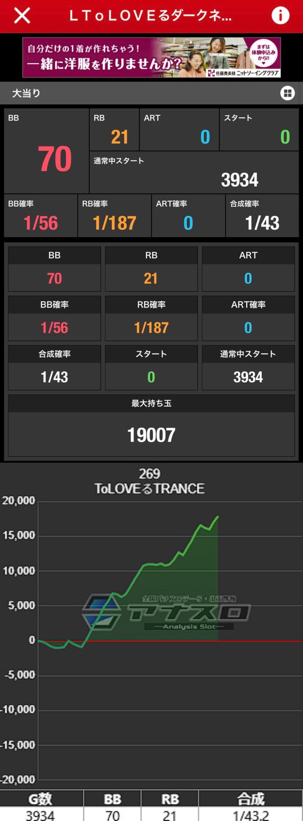 いろいろありましてトランス並び打ちしてた彼が辞めるって行った台で2人合わせて最高約万枚