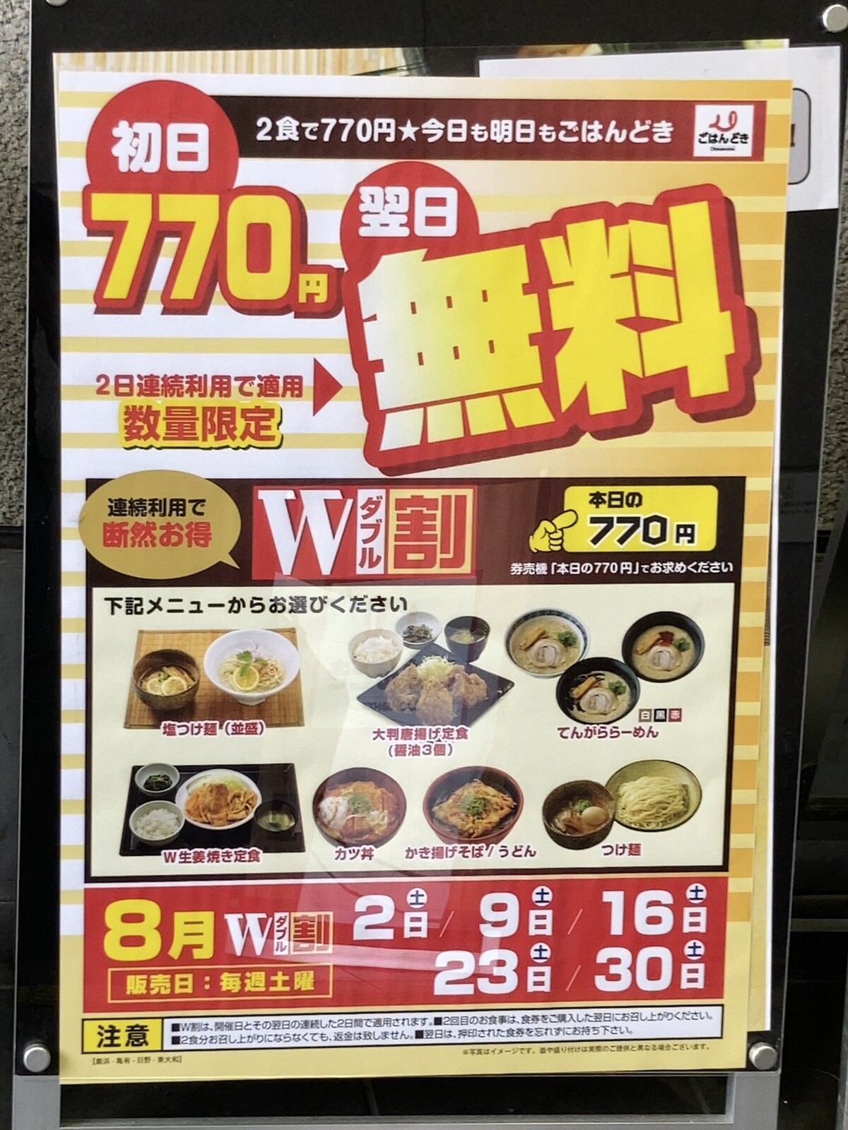 初日食べたら翌日無料って凄いなw