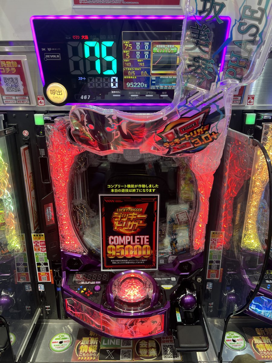 先程、パチンココーナー 467番台にて…