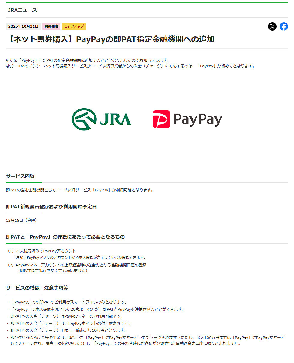 即PATがPayPayと12月19日から連携 JRAが発表https://t.co/8ZHm7Lqlmf