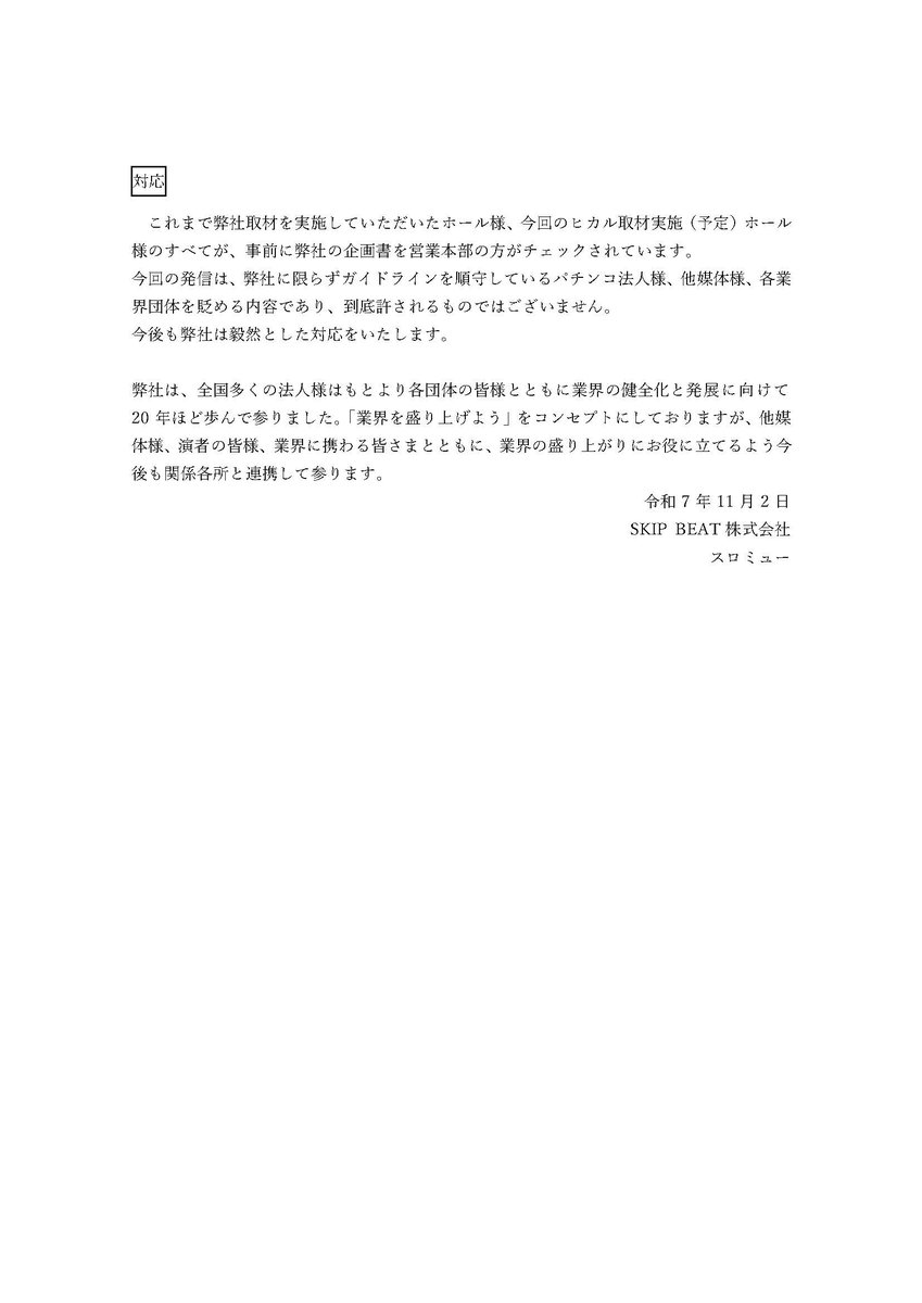 この度、「YouTuberヒカル」と「スロミュー」のタッグ企画の展開にあたり、ヒカル公式チャンネルでの配信を多数の皆様にご覧いただき、誠にありがとうございました。… pic.twitter.com/L70MJNrcxf