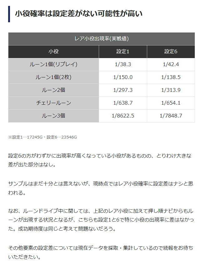 てか小役確率は設定差なしって山本が出てる試打動画で言ってなかったっけ?