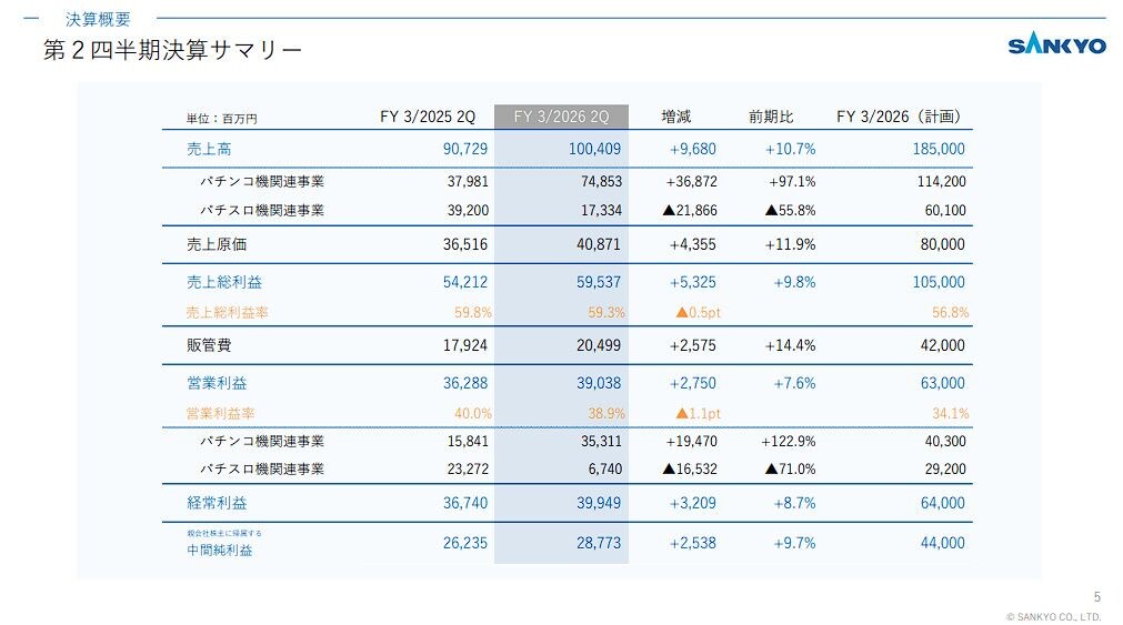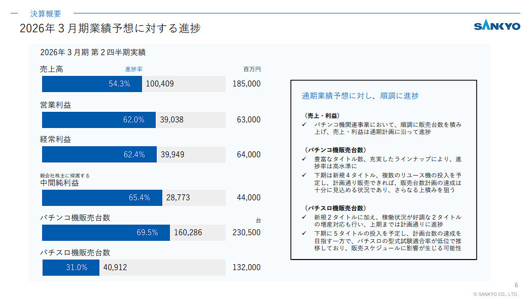 SANKYOは11月6日、2026年3月期第2四半期(2025年4月~9月)の連結決算を発表した。