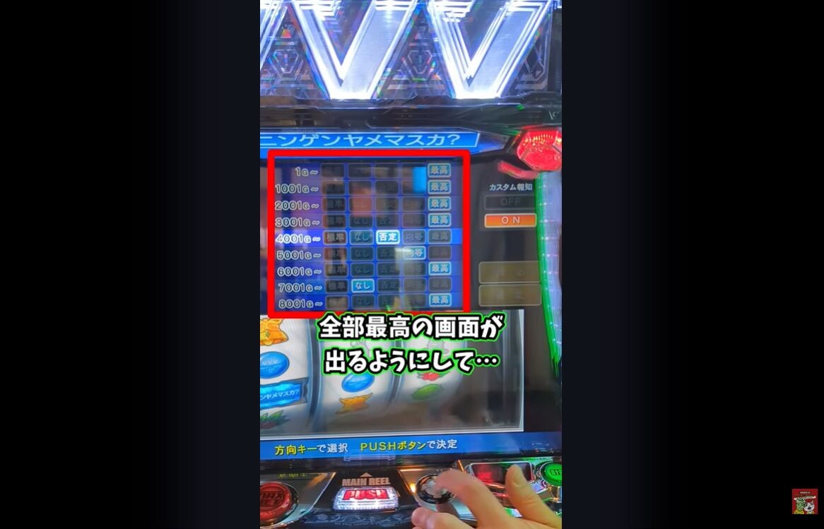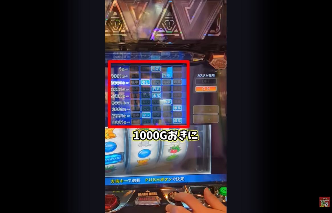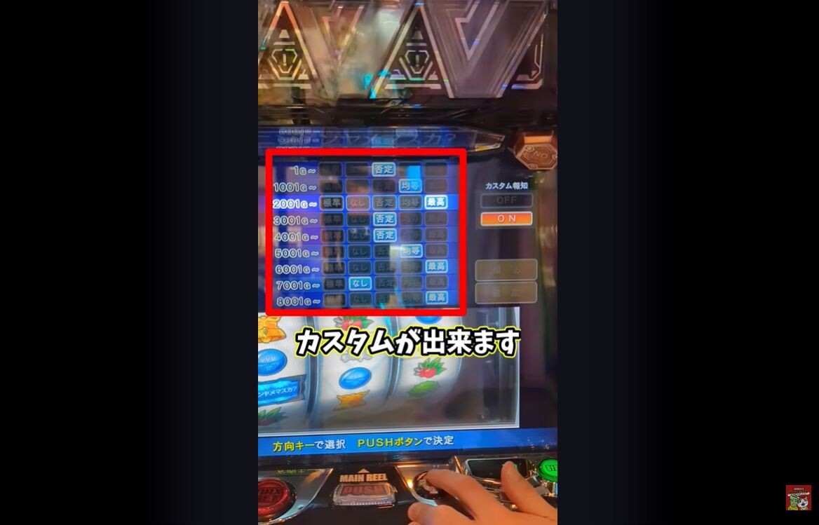 今日初打ちで画面左下のカスタム設定中ってなんだよってなって