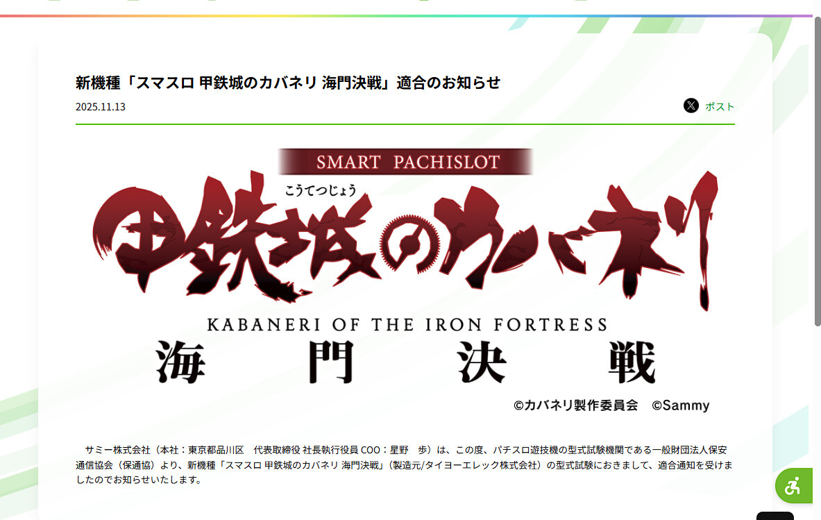 — サミー株式会社 (@sammy_corp) November 13, 2025