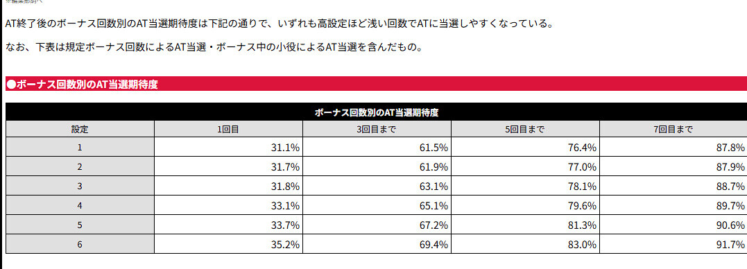 白7揃いやレアキューブ目の正体「1枚役フラグ」の詳細が明らかに!😎 ボーナス回数別のAT期待度は設定差のある部分で、特に3回目以内に注目です!!👍
