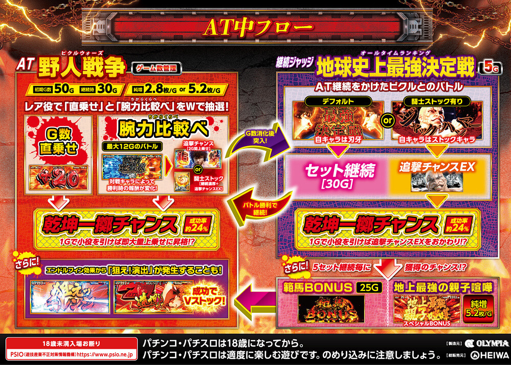 【新台】平和「L範馬刃牙」機種サイト公開ッッ!上乗せG数自力昇格チャンレジ乾坤一擲チャンスは約4回に1回は大量上乗せ!?