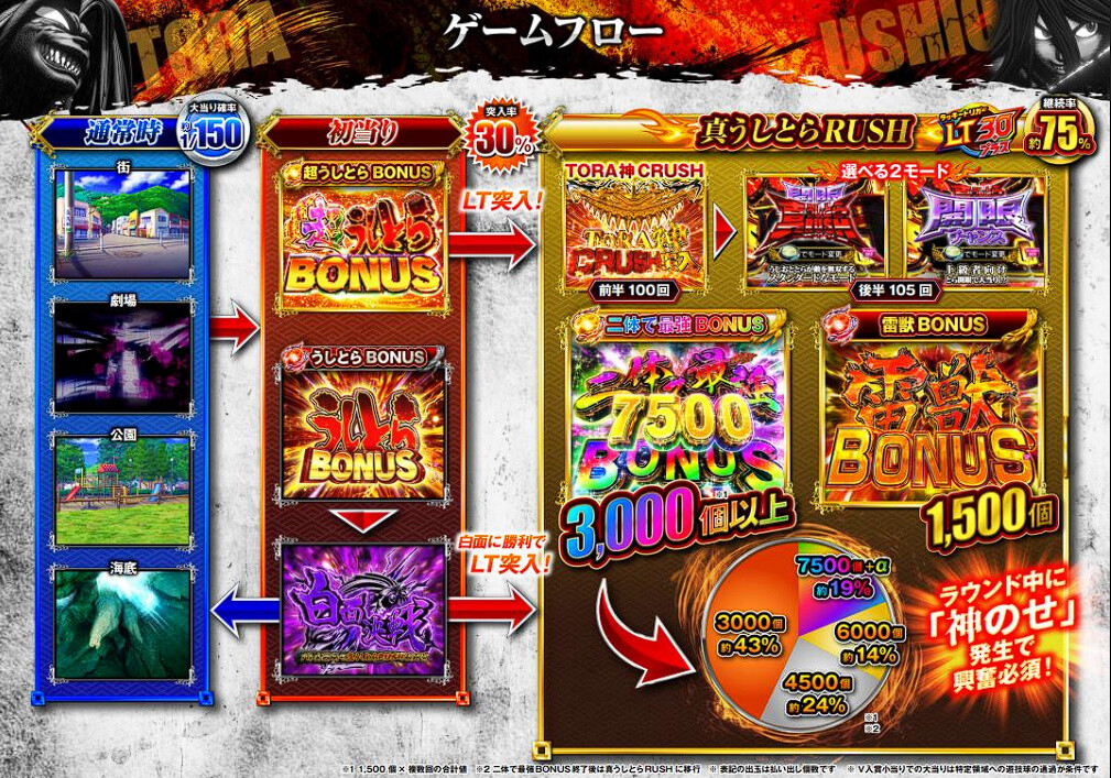 仕事が早く終わったから、新台うしとらライトを20時15分〜打った。4万玉凹み台。一発でRUSH入って、閉店5分前に取りきった。
