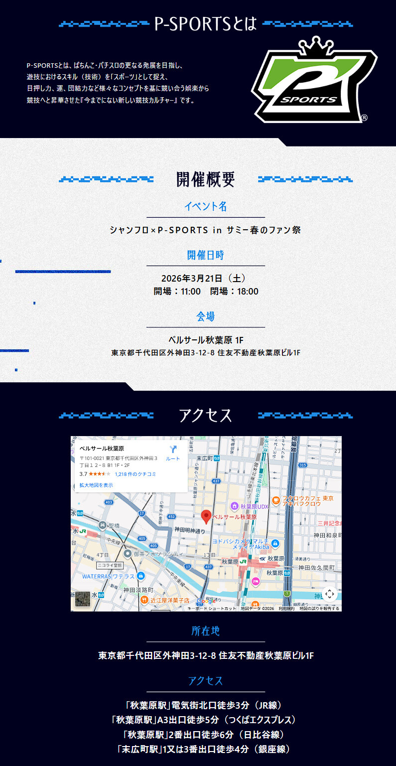 【3月21日・ベルサール秋葉原で開催】「シャンフロ × P-SPORTS inサミー春のファン祭」特設サイト更新!MCは寺井一択さんと道井悠さんが担当