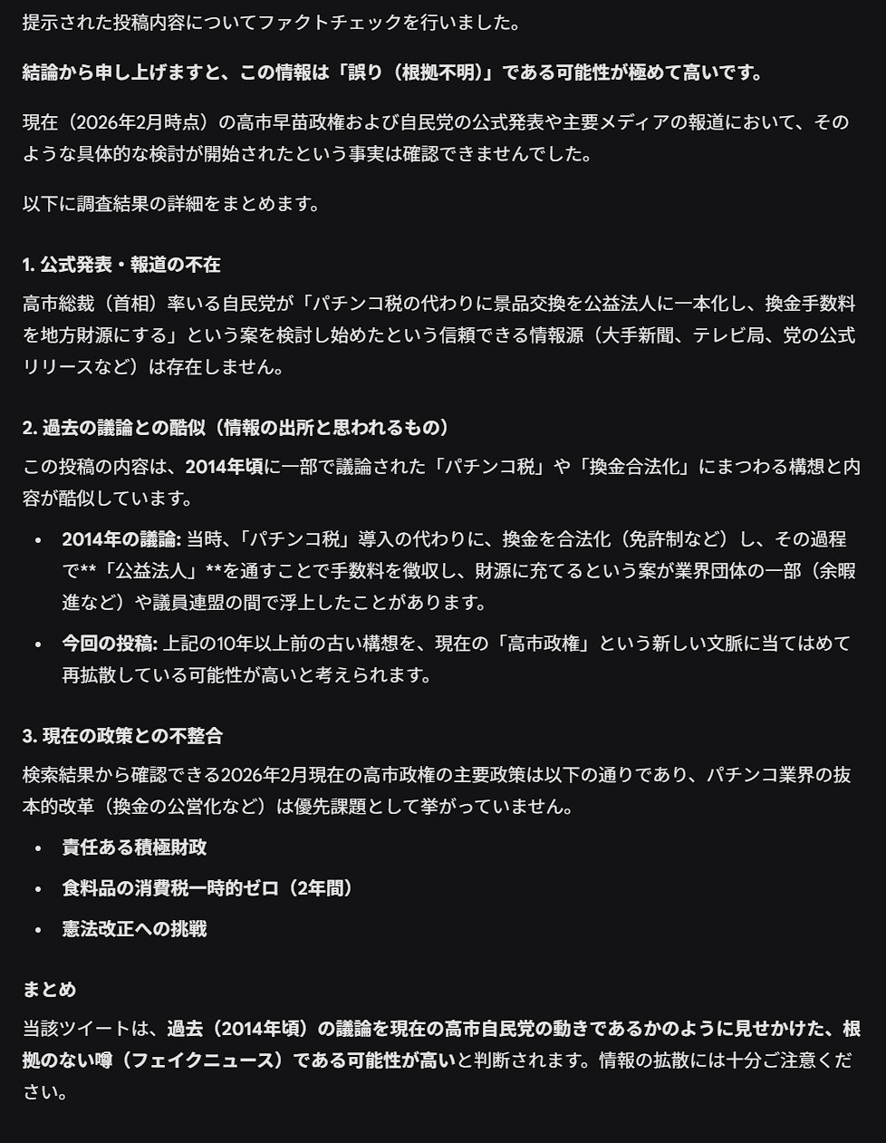 AIによるファクトチェックの結果